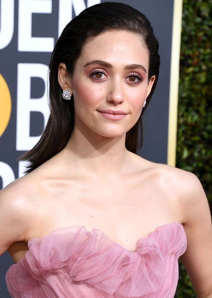 Pretty in pink is the best way to describe the Shameless star’s blush makeup and bubblegum pink gown.