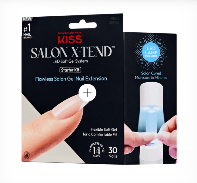 The Salon X-tend LED Soft Gel System—you can purchase a starter kit which comes with everything you need for a complete manicure, including an LED lamp and gel adhesive—allows you to create a salon-quality gel nail extension in a mix of shapes, lengths and shades/design options from the comfort of your own home. The nails come pre-sculpted and pre-polished, but you can cut and file them to your desired look without ruining the nails.