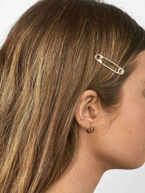 The gamut doesn’t begin and end with bobby pins and hair ties. The newest drops hit on every trend you’ve seen so far this year, from over-the-top bejeweled headbands to boldly-printed wraps. Think marbled clips, oversized barrettes and even Janelle Monae-inspired safety pins (so chic). The best part is regardless of your hair length or type, there’s an adornment for upgrading every type of basic ‘do with little to no effort.