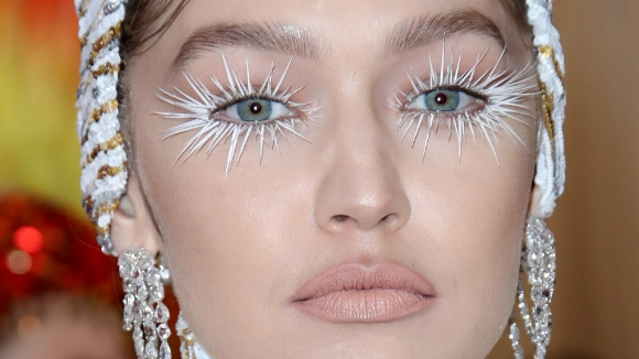 We’re really hoping Hadid’s spikey white lashes are actually soft.