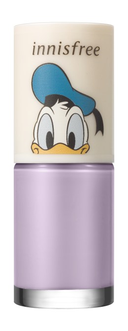 Shop four high-shine nail polish shades: Donald Duck in color #210 (lavender), Daisy Duck in #211 (pale pink), Mickey Mouse in #212 (Mickey-shaped glitter) and Minnie Mouse in #213 (red).