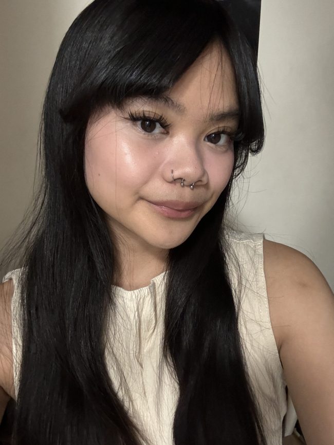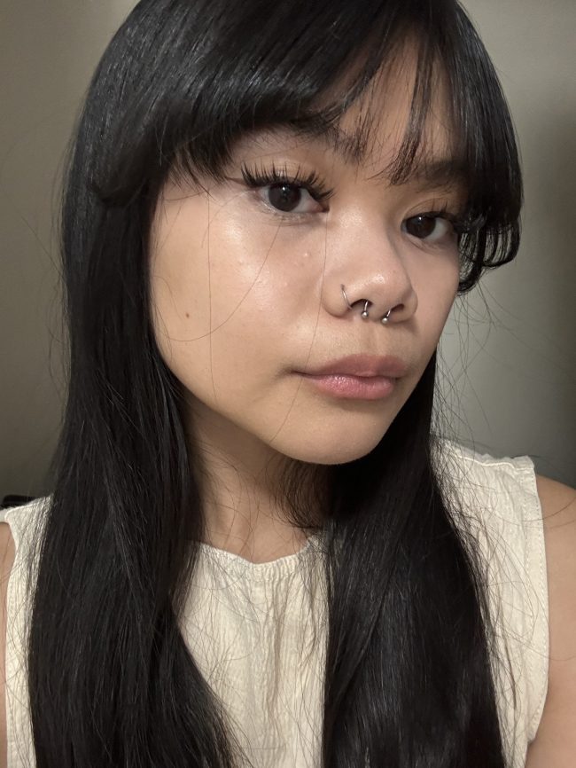 Beauty writer Kleigh Balugo next to the Anastasia Beverly Hills Blurring Serum Liquid Blushes.