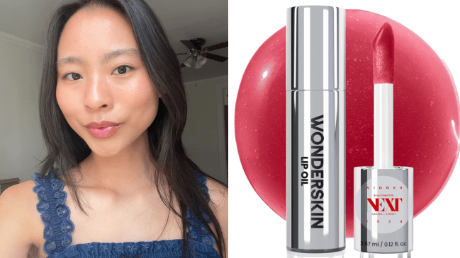 “I have mixed feelings about Wonderskin’s Lip Rehab Serum Oil. On the one hand, the formula both looks and feels good on my lips. While I can feel the product’s hydrating and nourishing properties, and my pout has a nice sheen to it, the oil is quite sticky (my stray hairs keep getting stuck on my lips) and sits on top of my lips instead of absorbing a bit. The product feels more like a gloss than a serum-oil hybrid. And although Wonderskin emphasizes that this tinted formula is very sheer, the shade I tried, Amour (a raspberry red), reads more as a bright pink in the bottle and on my lips. At least on my skin tone, I don’t feel like Amour is a true raspberry red, but that doesn’t mean that’s the same for everyone. It still adds a pretty and subtle wash of color and sheen (I paired the lip oil with rhode’s liner in shade Lunge). I also wasn’t the biggest fan of the lip oil’s applicator. It didn’t distribute the product as smoothly as I had hoped, but then again, it’s a super sheer lip oil, not a high-coverage matte liquid lipstick, so maybe this kind of product doesn’t require that precise of an applicator, and I’m being nit-picky. All in all, I think you can find a better lip serum-oil for $20 or less (I like Merit Beauty’s Shade Slick Gelée), but if you just need a standard tinted lip oil that can get the job done in a pinch, Wonderskin’s Lip Rehab Serum Oil suffices.” —Katie Decker-Jacoby, Commerce Editor