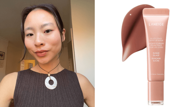 “I hate to say it, but I’m not a fan of Laneige’s cult-fave Lip Sleeping Mask or Lip Glowy Balm. Everyone else in my life raves over these two lippies, but I find them to be too thick, heavy, and at times, drying. So it makes sense why I was skeptical about testing the brand’s new Glaze Craze Tinted Lip Serum. Was I going to have beef with yet another Laneige lip product or would this be the one to finally break the curse? I’m happy to report that it’s the latter. This formula is fairly thick but not heavy, and I like the amount of slip and shine it offers. The product felt comfortable on my lips and appeared to make my pout look plumper than usual. I paired the Glaze Craze Tinted Lip Serum with rhode’s Peptide Lip Shape in Lunge and will definitely be repeating this combo. Not to mention, the shade I’m wearing in the photo, Sugar Glaze (nude beige), has the most drool-worthy, lip-licking, delectable flavor. I knew to expect a sweet taste and scent because of the launch’s name, but WOW. Sugar Glaze truly does taste like a classic glazed donut. If you’re wondering how the unique, donut-shaped applicator works, same. I initially thought it’d cause a mess, but to my surprise, application was smooth and I didn’t have to clean up any product with a Q-tip. Although I don’t think this tinted lip serum will become my everyday lippie, I would say anyone who loves Laneige’s lip products or has been wanting to try them, should give this launch a go. It’s fun, innovative, and oh-so-tasty. Plus, it’d be a good gift for the beauty-obsessed friend. After trying one of the four donut-inspired shades, I’m curious to see how the others look and taste. And I’m so glad I can finally say I’m a fan of one of Laneige’s buzzy lip products!” —Katie Decker-Jacoby, Associate E-commerce Editor