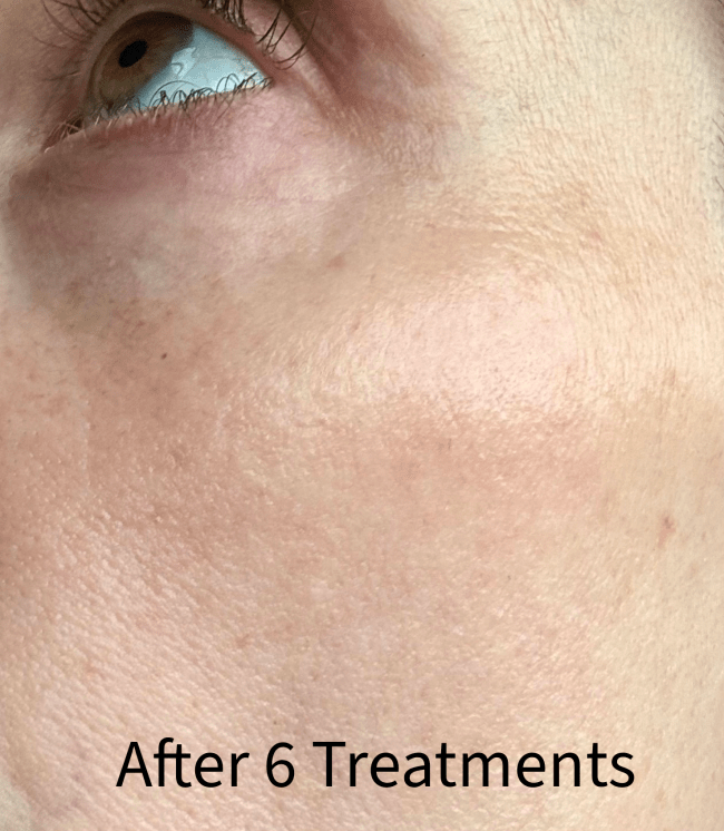 After the treatment, my skin felt a little warm and sore, almost like a sunburn. But you do the treatments right before bed, and by the time I woke up in the morning, there was no redness or pain at all. I did have a few minuscule scabs (we’re talking pinprick-sized) here and there, but nothing that would be visible if you weren’t looking for it.