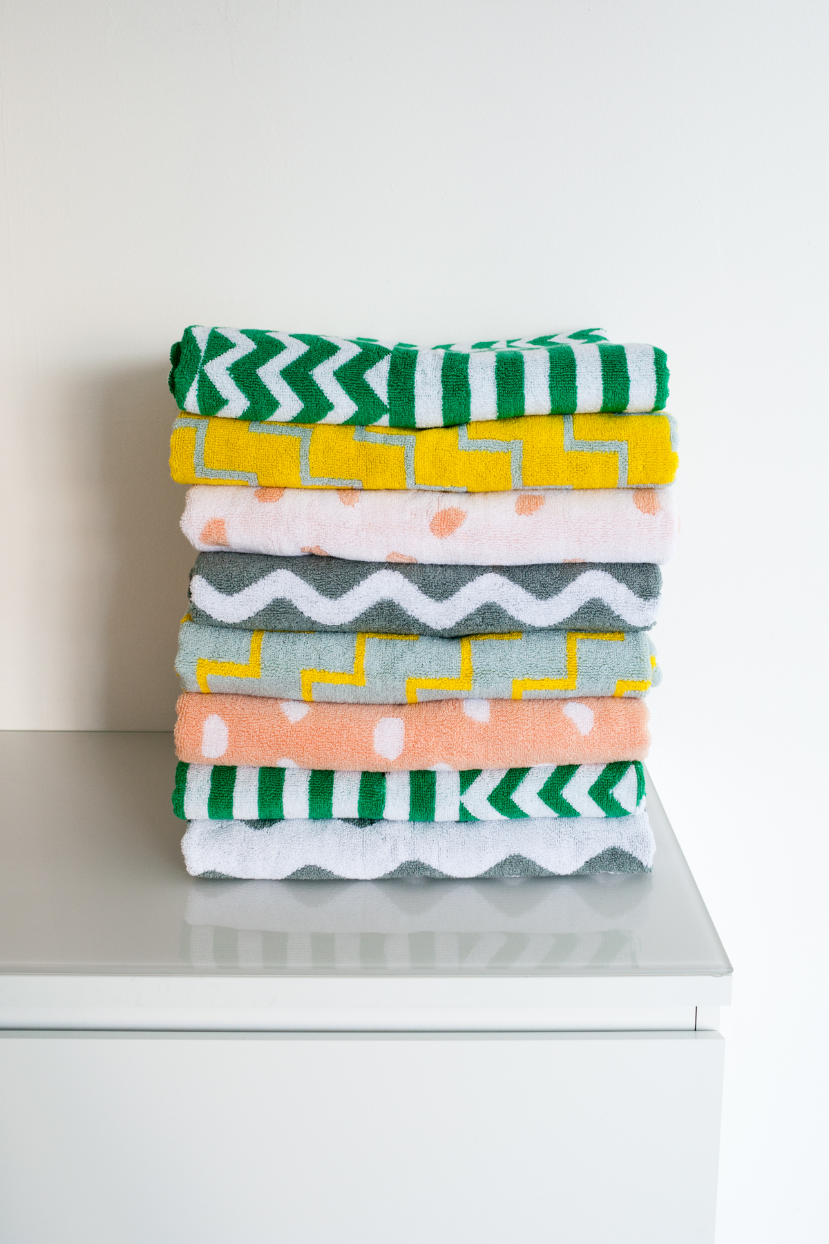 The range includes bedding ($38–$160), towels ($38), poufs ($180), throw blankets ($180) and throw pillows ($52)—all done in Dusen Dusen’s signature style. “I am mostly excited about the bedding,” says Dusen, “I have been looking for fun sheets for a really long time and they are really hard to find, which was part of the reason I started the home line in the first place.”