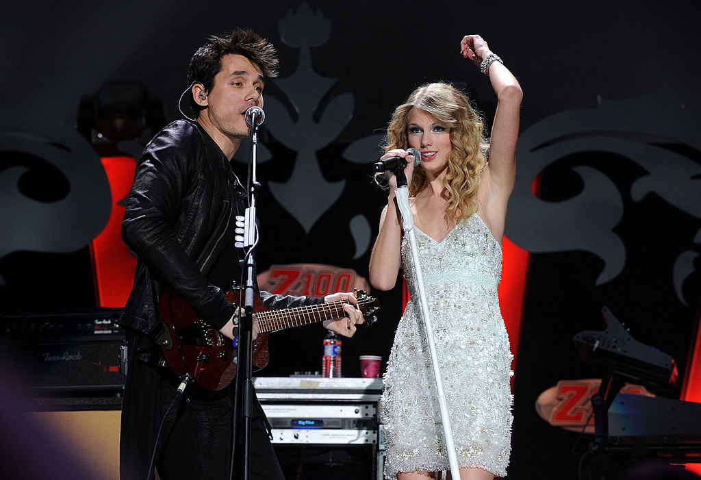 John Mayer and Taylor Swift perform onstage during Z100’s Jingle Ball 2009. Photo by Theo Wargo/WireImage for Clear Channel Radio New York