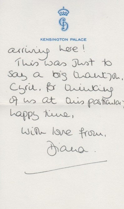 “Ah, Diana. Her handwriting is so recognizable. The large, round, openness of it reveals a woman who needed love, affection, attention and approval in a very big way. Her rounded, soft writing has few angles and shows that, like Kate, an abiding need for harmony prompted her to do her best to create a serene backdrop for her life. The horizontally expanded writing indicates that freedom was a powerful imperative for her.”
