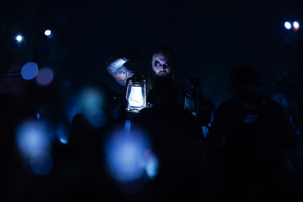 Bray Wyatt enters the arena to fight in the pitch-black event during the WWE Royal Rumble. Photo by Alex Bierens de Haan/Getty Images