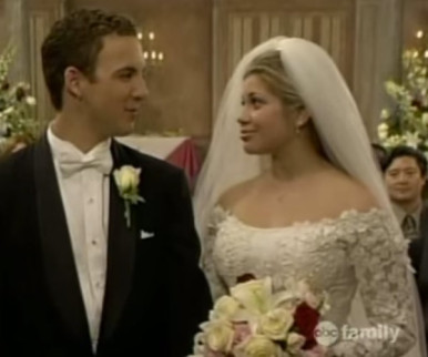 This dress was way better than the one Cory’s mom wanted Topanga to wear. The Boy Meets Worldcharacter said “I do” to her man in a gorgeous gown with lace sleeves and a voluminous, princess-like skirt.