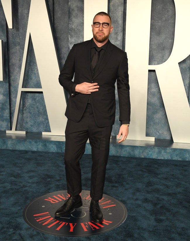 Wearing black-on-black at the 2023 Vanity Fair Oscar Party.