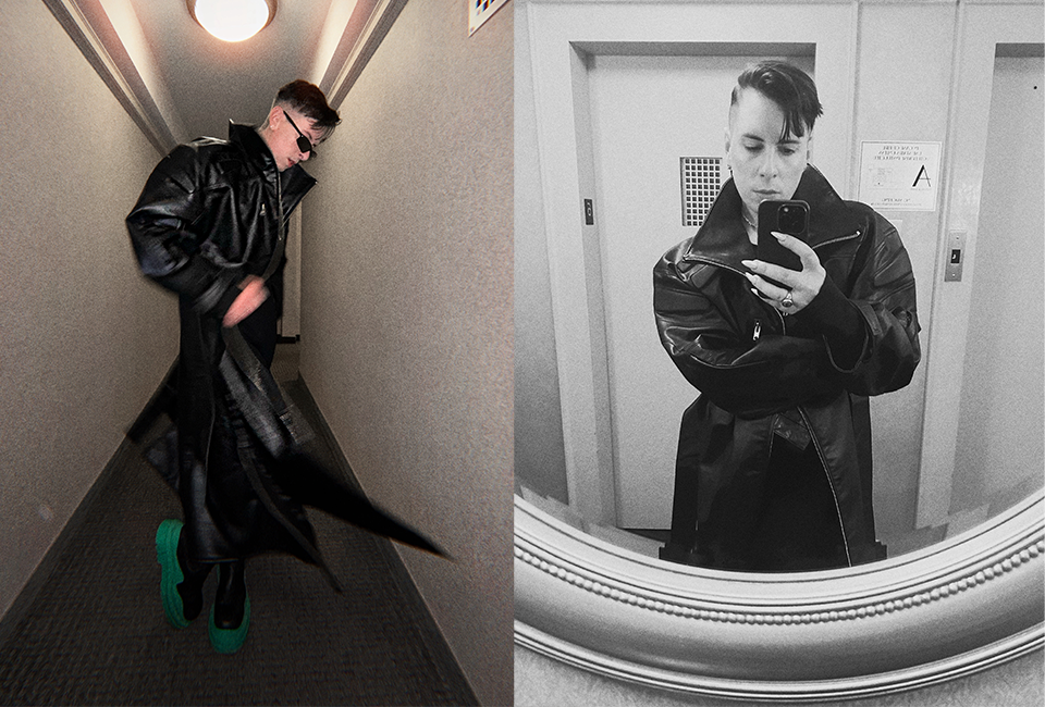 I was a bit nervous stepping out in a full onesie, no pants, covered only by the trench. However, the fabric on the base layers is super thick and stretchy, sucking you in for a very snatched feeling (of note: I wore a M in all pieces and am 6 feet tall—it fit perfectly). The leather trench is nice and thick without being too warm, so I was able to wear both together comfortably. I also loved the collection of zippers at the bottom of the piece, allowing for more breathability and stylistic choices. Yes, the Angelina-esque slit is definitely achievable. A few cocktails and drag numbers later, me and my Khy trench headed home and straight to bed.
