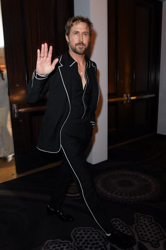 Behold: a Gosling in Gucci. A true prince charming, Gosling went for a dapper look as he graced the carpet in a classic, black three-piece suit featuring white lining along the lapel and an open V-neck shirt where a dainty pendant necklace was on display. Timeless black Oxfords adorned his feet, while his hair was perfectly disheveled.