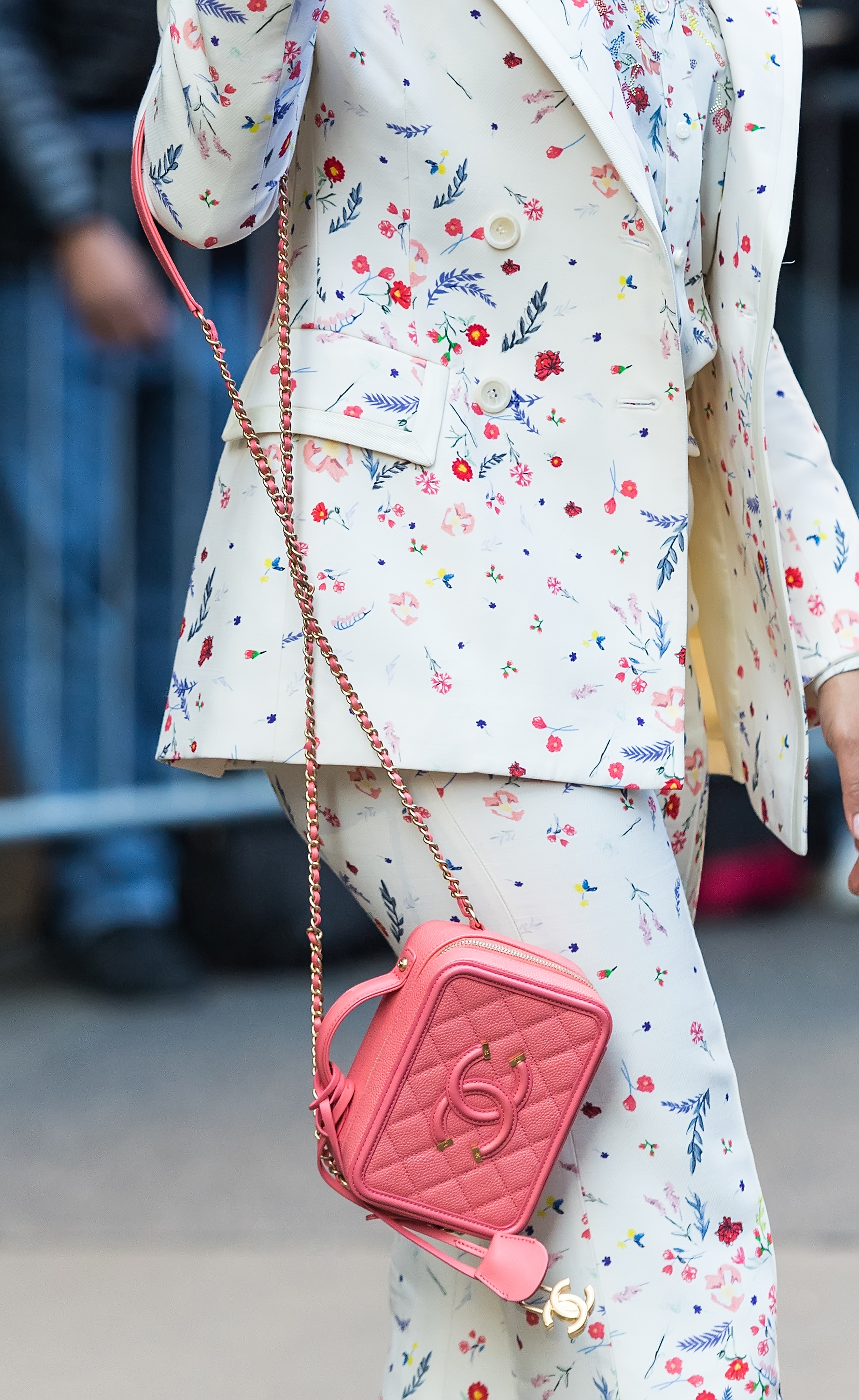 The newly married Chopra accessorized the spring-inspired look with with bright red heels and the cutest pink Chanel purse. My favorite part of this whole ensemble, actually, might be the purse. It’s the perfect shade of pink and the perfect size for carrying essentials. (I’ll just pretend I don’t actually keep a million different “essentials” in my bag.)