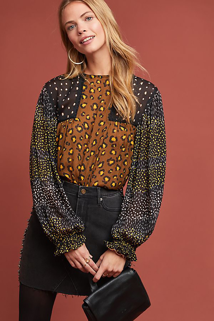 Eclectic Leopard Peasant Blouse, $128 at Anthropologie