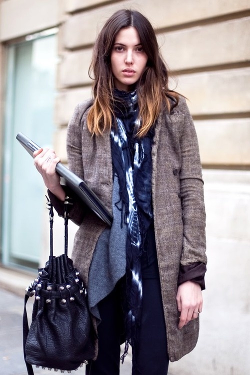 Avoid potential dowdiness by playing with weight and textures. Leather and chiffon, wool and cotton, latex and cotton, etc., will keep a look fresh and won’t weigh you down. And always keep in mind that light billowy fabrics like silk and chiffon make for great layering pieces that create movement.