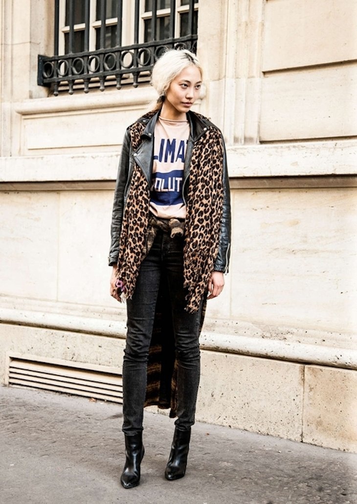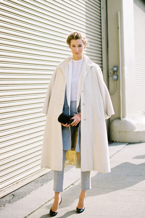 4 is the magic number in any layered look. Think: slim fitting trouser, oversized oxford shirt, sweater vest, and coat draped across the shoulders. And don’t be shy with incorporating a piece de resistance: an statement coat in a brilliant hue, wild printed leggings, or blouse in an unexpected shape that really brings it all together. Or, for dimension without the bulk, a statement scarf is always your friend.