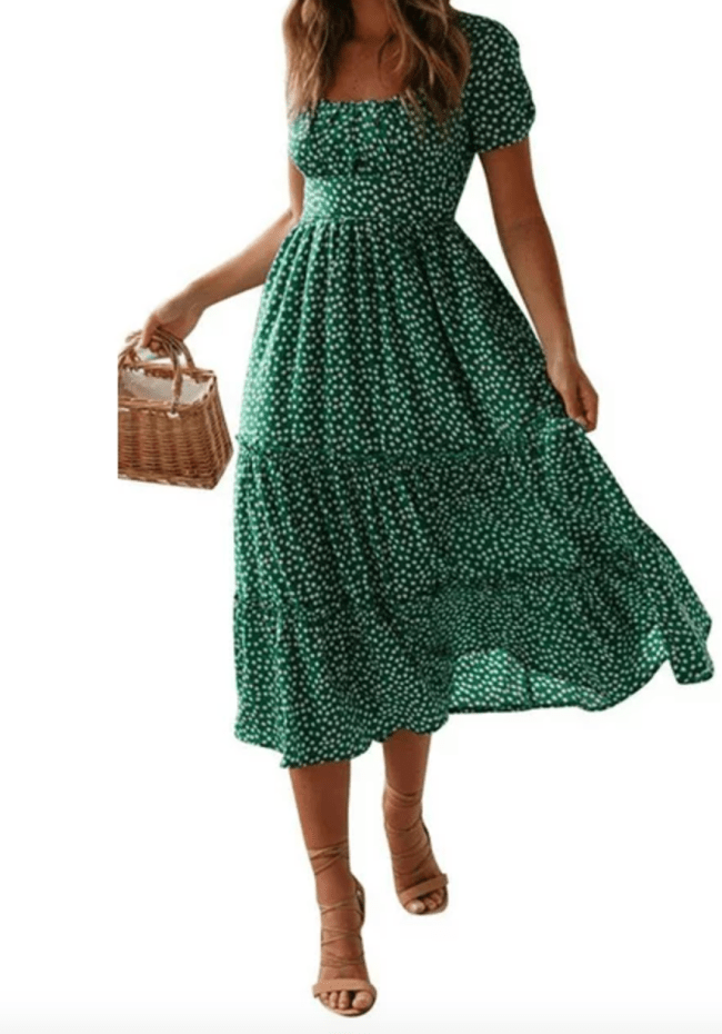 This dress comes in so many different colors and looks like something that would be found on Reformation. It features a tiered skirt and slightly puffed sleeves for a style that can easily be dressed up or down. It comes in 18 different colors, but only some are on sale, like this green color that’s under $10.