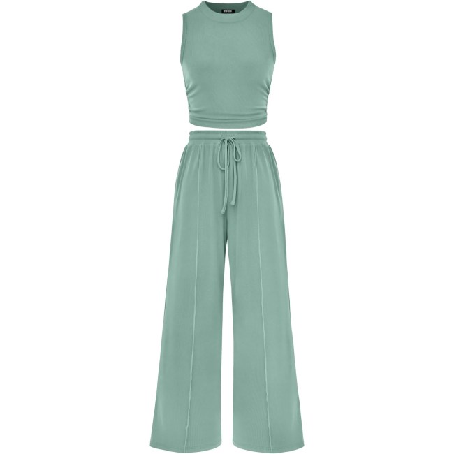 The ribbed knit, two-piece BTFBM outfit plays with proportions, pairing a form-fitting, high-neck tank top with loose, wide-leg pants that feature a stretchy waistband and functional pockets. With a 4.3 overall rating, the set is a favorite among those who have purchased it, and it continues to be praised for its quality as well as its sleek appearance.