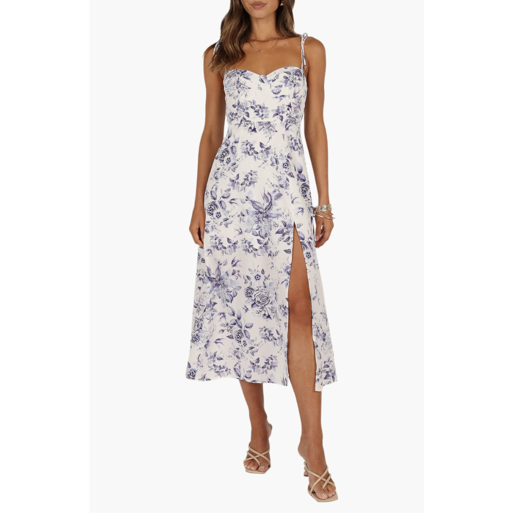 This midi dress from Petal & Pup has seamed cups, slinky tie straps and a leggy slit at the hem. It’s practically identical to the Reformation dress and retails for $69 at Nordstrom.
