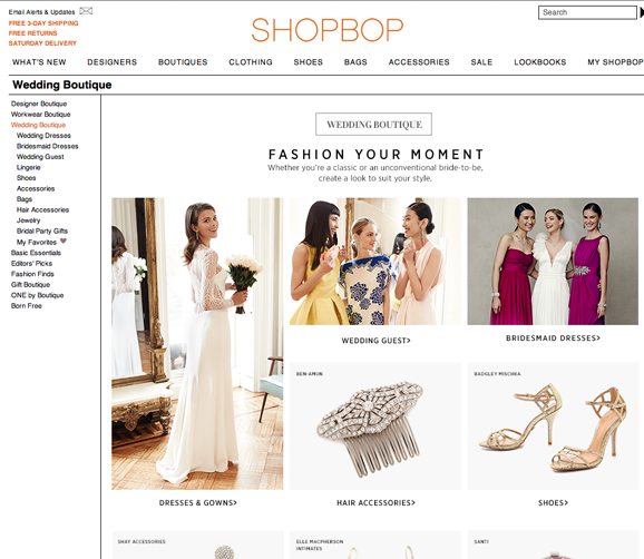 Browse Shopbop’s online wedding boutique which, as far as we concerned, should be the cool bride’s first stop. With prepaid returns you really can’t go wrong!