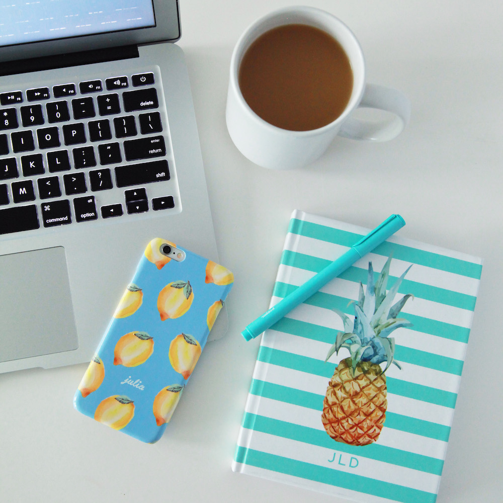 If you’re not familiar, the NYC-based correspondence company creates whimsical tech accessories and stationery that can either be monogrammed or personalized, and regularly teams up with bloggers on themed collections (past partnerships include a peony range with The College Prepster and a plaid assortment with Grace Atwood of Stripes & Sequins). Its latest joint effort is with Julia Dzafic, the Connecticut-based lifestyle blogger behind Lemon Stripes, who chose a trifecta of summer fruits as her main motif.