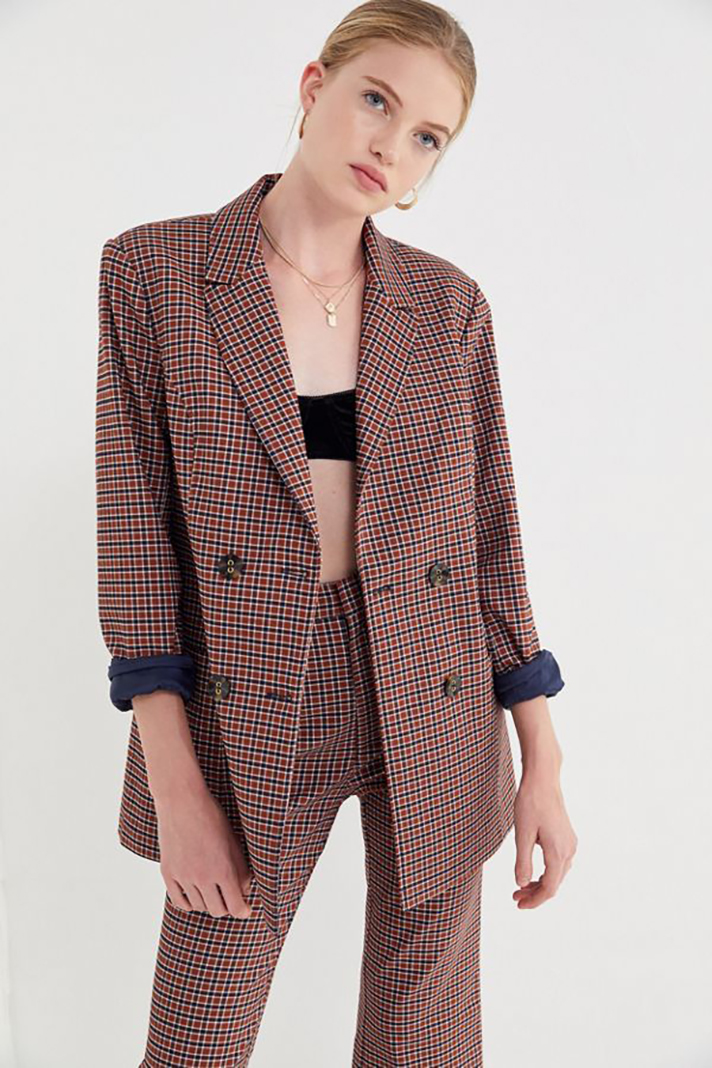 Jacques plaid double-breasted blazer, $129 at Urban Outfitters