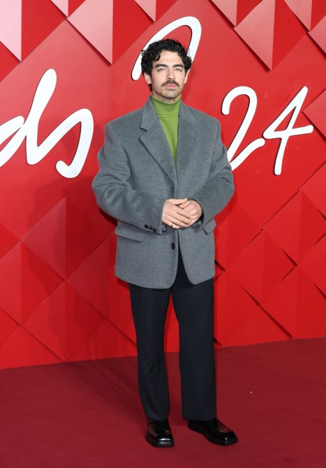 Jonas looked dapper in green turtleneck, black pants, and square-toe shoes.