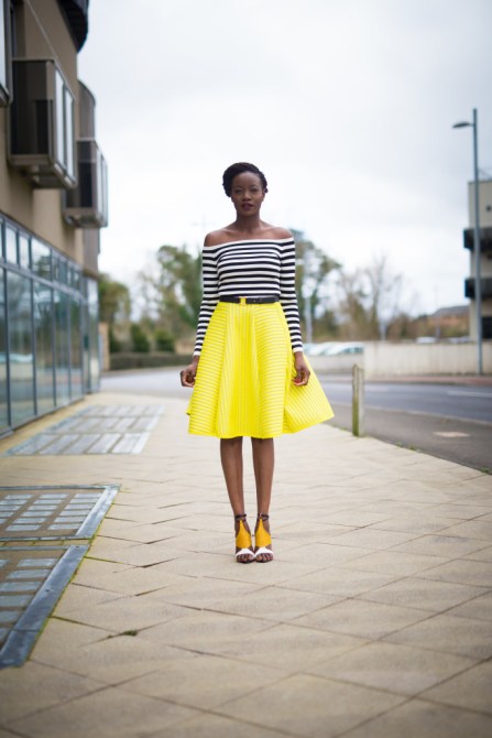 PARIS, FRANCE – JUNE 19: Bianca Derhy (fashion blogger – Bibi Goes Chic), is wearing a Glamorous striped top, Zara shorts, Tory Burch shoes, and a Furla bag, during a street style session, on June 19, 2016 in Paris. (Photo by Edward Berthelot/Getty Images)