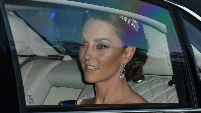 According to Town & Country, Queen Elizabeth II loaned the tiara to Diana in 1981 as a wedding gift. While Diana didn’t wear it to her actual wedding, it became one of the Princess’s favorites, and she was pictured in it often. After Diana’s death, the tiara wasn’t seen again — until Kate wore it to Buckingham Palace in 2015. Since then, she’s worn it a handful of other times, including tonight’s banquet.