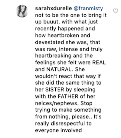 A few fans have come to the reality star’s defense, explaining why people shouldn’t have an issue with their bond. And Khloé responded to two of the people who stood up for her. One person wrote, “just because two people are close don’t mean they have shagged before.” Khloé replied with a few heart emojis. Aw. She then left kissy face on a commenter’s post who explained that she is not the type of person who would sleep with her sister’s ex-BF.