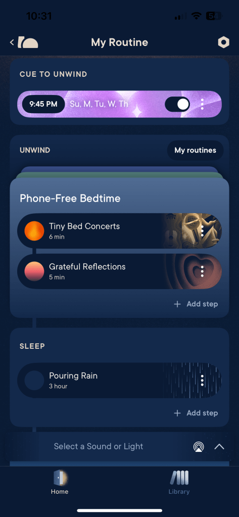 With Hatch+, your nightly routine can consist of everything from calming meditations, true crime podcasts, jazz music sequences, and more. You can also set different routines for different nights if you want to switch it up throughout the week.