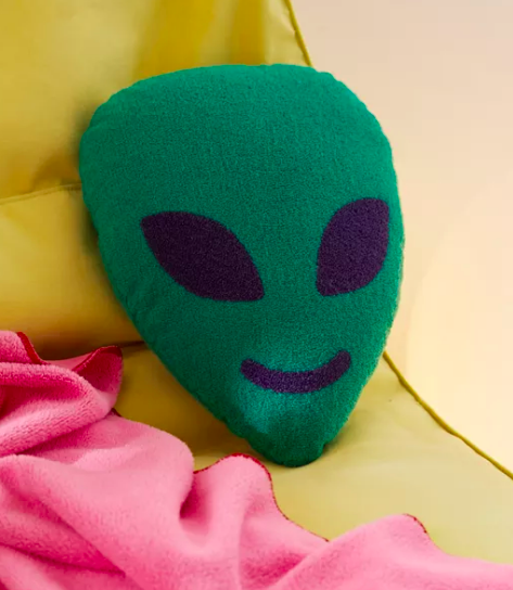 Why have a regular rectangle pillow when you can have an alien head pillow? That’s dopamine decor, baby! It’s also available in ultra-cute orange and pink colors.