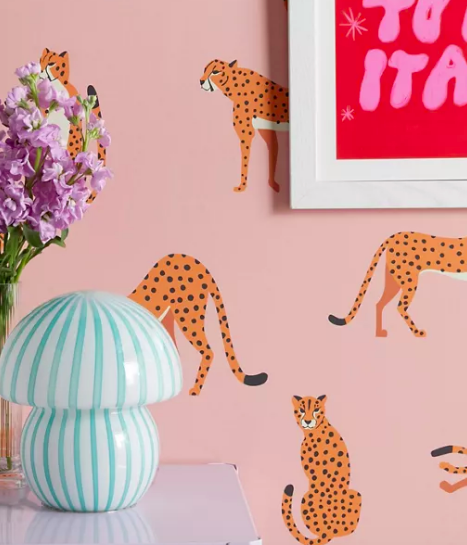 BlueLeLa Cheetahs Pattern On Pink Removable Wallpaper