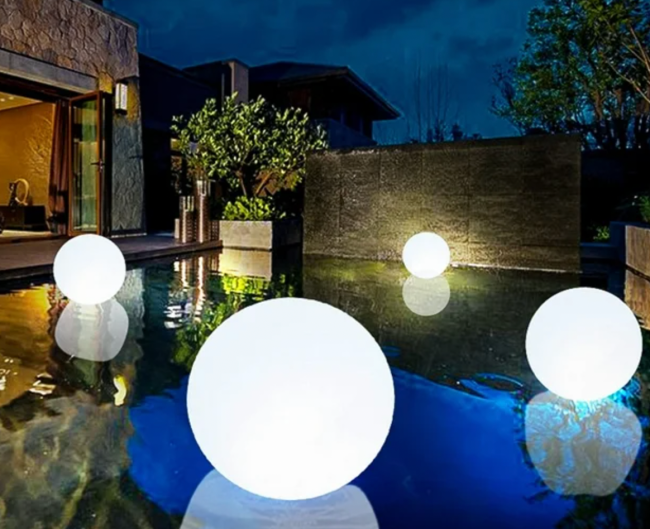If you don’t want to go heavy on the photo wall decor, you can use large inflatable items as decor. “I like big inflatable pool games, like ring toss,” says Jervis-Hill. “They add that fun element, and the bright colors really fill the space in the pool as guests arrive and make them want to get in the water.”