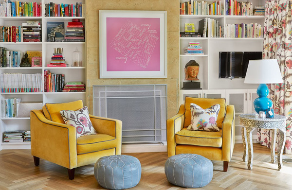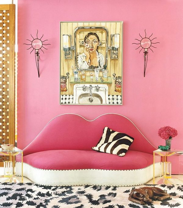 Don’t be afraid to get creative when decorating with the color pink! Source cool objects in the color—everything from mini lucite figures to pink shoes—placing them on a coffee table, a nightstand, or a mantel.