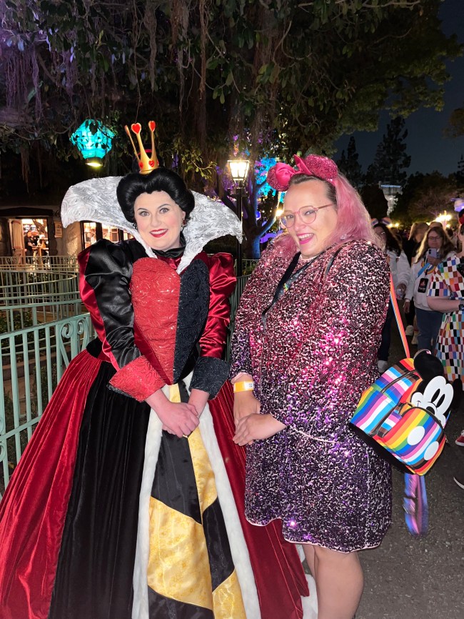 While I’m a Disney Parks fan through and through, it can get annoying to chase down the characters if you want photos, but unfortunately there’s no getting around that. That said, the characters were spread throughout the park to greet guests all night. I met Mickey and Minnie, Mulan and Mushu, Tinker Bell and Friends, Clarabelle Cow, and The Queen of Hearts.