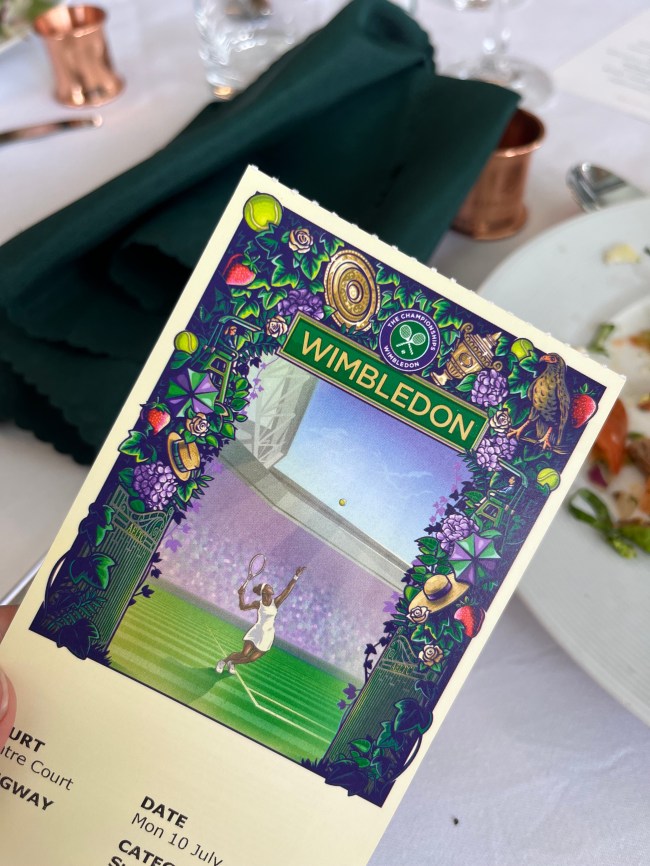 Tickets are notoriously hard to get to Wimbledon, as it’s a pretty small venue at the All England Lawn Tennis and Croquet Club, where Wimbledon is held in the U.K.. To get tickets to Wimbledon, you either have to be invited by a sponsor (like Sipsmith) into one of their hospitality suites, or sign up for a public ballot — aka register on the site before September of the year before; you’ll get a registration invitation in September, be able to apply in November, and the ballot begins in January. If selected through the ballot, you’ll get options to buy specific tickets for specific matches. There’s always way more people on the ballot than tickets, so it really comes down to luck.