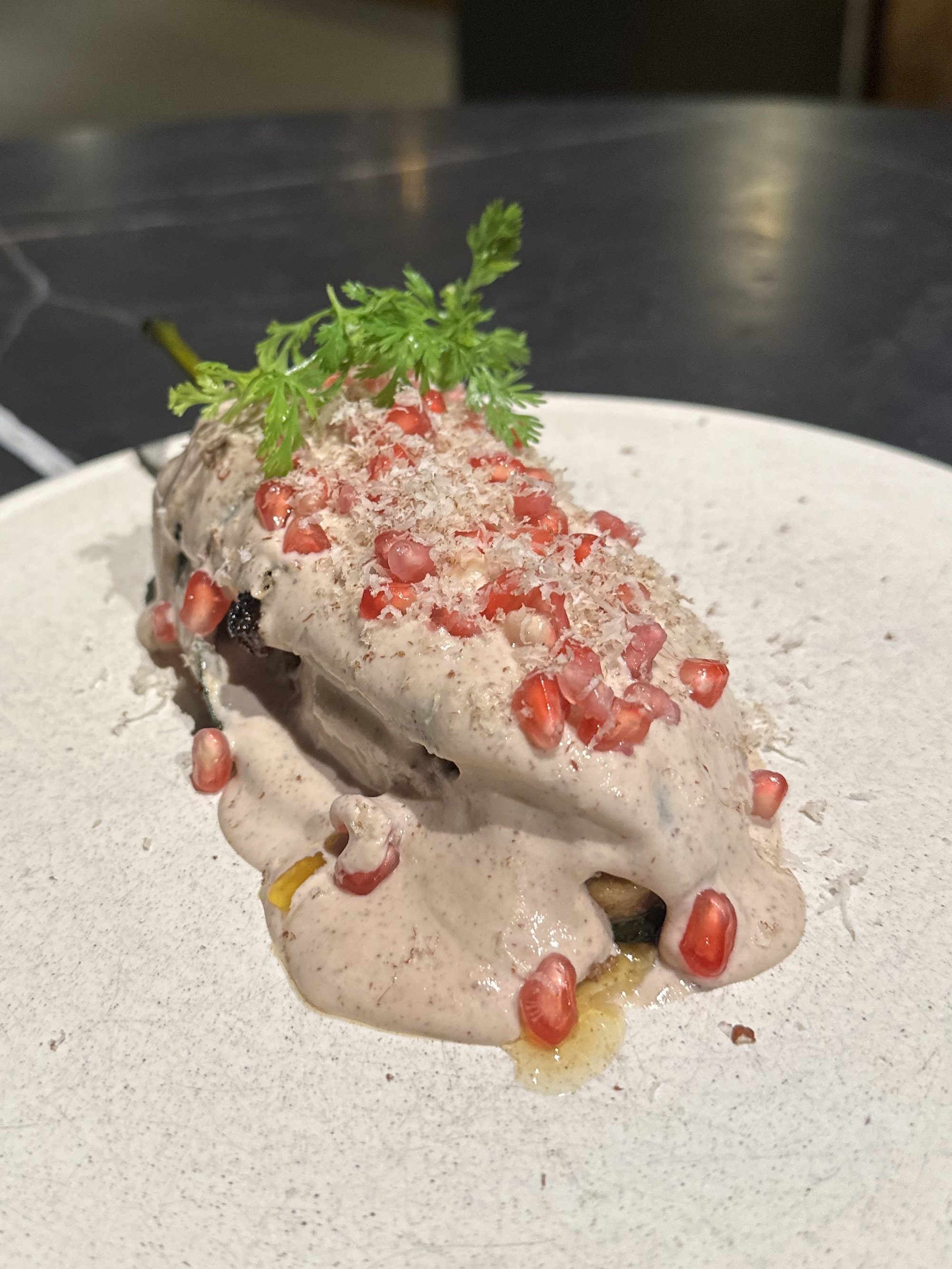 You’ll be tempted to stuff yourself with the corn tamalli stuffed with short ribs and smoky chiltomate and arroz al horno, but practice restraint. The mole rosa, a raspberry and coconut textural playround, awaits.