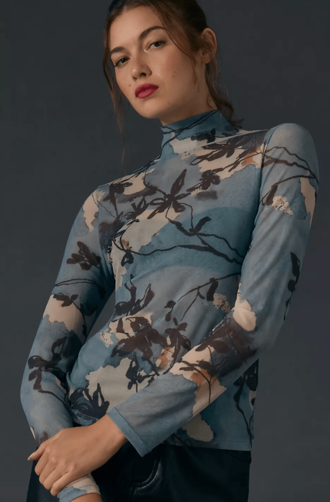 This mesh floral top is a more wallet-friendly alternative to the one Tayor Swift wore. It’s available in sizes XXS-3X and features a blue floral motif.