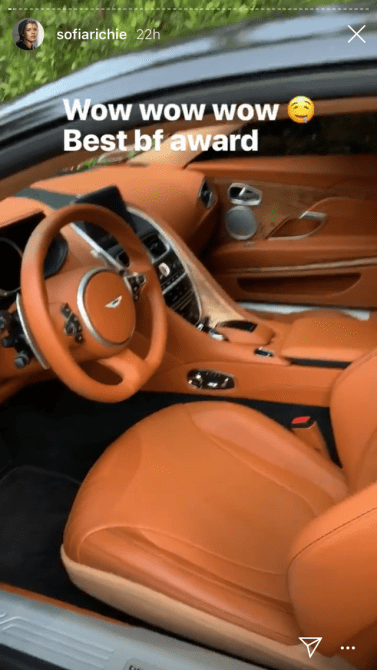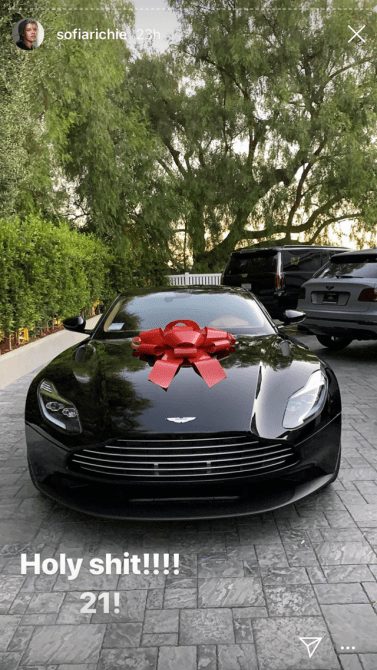 Her day began with the cutes rose petal covered breakfast, which consisted of pancakes, eggs, bacon and carrot cake. Then Scott gifted her with the sickest car–a fully loaded Aston Martin. Whew–what a life.