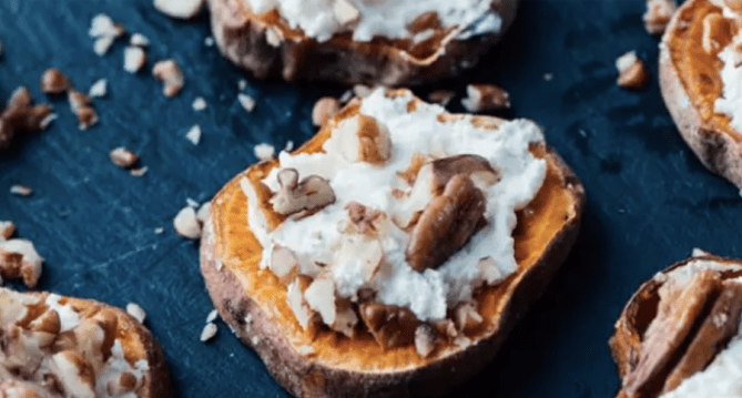 Luckily, you can make a truly impressive appetizer by slicing and roasting a pound of sweet potatoes ($1), then topping your rounds with schmears from a tub of whipped cream cheese ($3) and about an ounce of chopped pecans ($1).