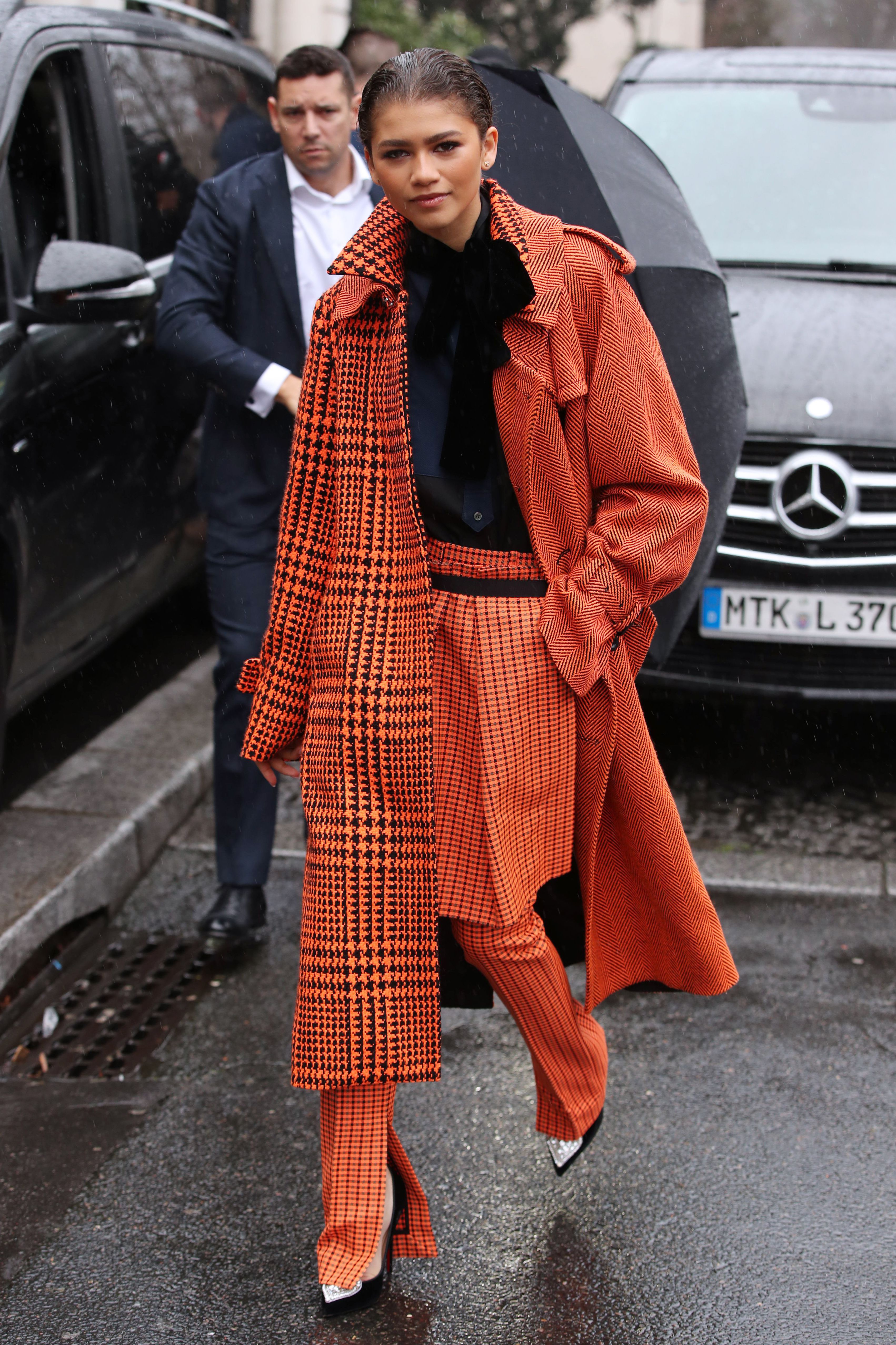 The street style during Paris Fashion Week 2019, which officially began on Monday, has been brimming with iconic Parisian style—and Zendaya has been up there with the best of them. So far, we’ve been blessed with four unique looks from the actress, and we’re anxious to see how many more she’ll squeeze out before PFW ends on March 5. She’s given us Mary Poppins chic, pastel monochrome, red knee-high snakeskin boots (!!) and the prettiest orange houndstooth coat I’ve ever laid eyes on. Honestly, I think my weekend plans are just to sit around and refresh my feed, waiting to scope out whatever Zendaya wears next. Each of her looks is a whole-ass mood.